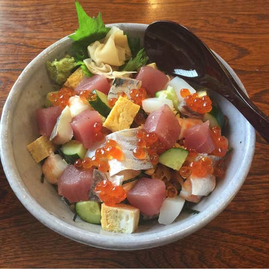 まぐろ中心の丼メニューが豊富で、名物のシラスやカツオの丼も有り!今回チョイスしたのは、