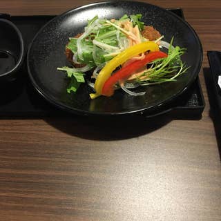 牛カツ鳥南蛮ハーフをいただきました。 甘口醤油と柚子胡椒はよく合う! メンチカツもスパイシーで良い感じでした。