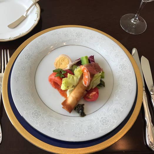 ランチは1,850円から1,000円刻みで内容がグレードアップしていきます。おっさんたちは仕事中の昼休みにつき一番リーズナブルなものに。それでも十分贅沢です❗