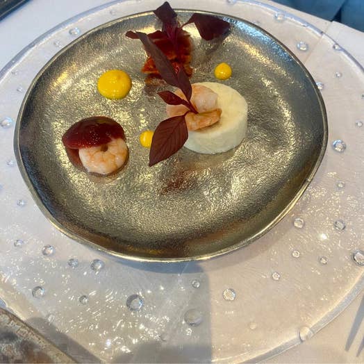デザートはバラのジュレがかかったバニラアイス。香りが上品ですね❗