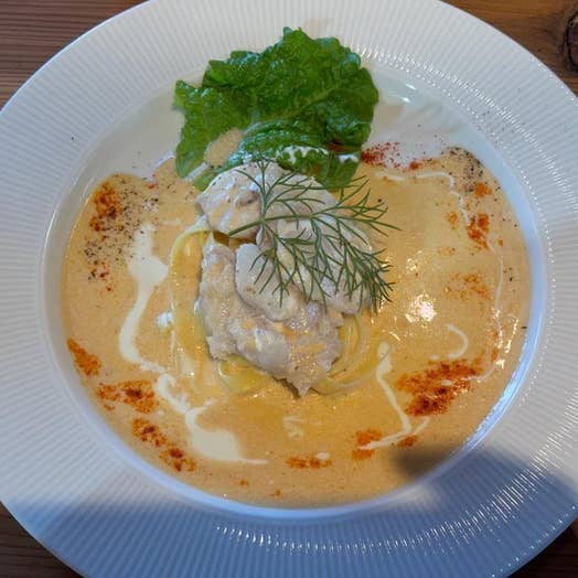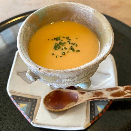 地元次に三島産のトマトで作ったと言う冷製スープ。これまた絶妙に旨い‼️トマトジュースではなくちゃんとトマトの冷製スープです。