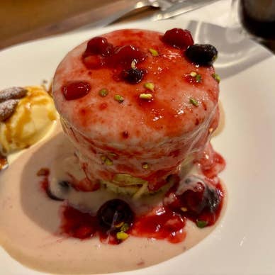 アンジュのスフレパンケーキを注文。(写真1枚目) 1452円。 飲み物2杯付き。 全体的に価格高め。 季節のパンケーキとか1700円+taxだった...! 注文受けてから焼くので 来るまで時間かかる。 話していたらあっという間にできた! (30分くらい待ったかな?) ふわふわで美味しい〜☺︎ アイスと生クリームと一緒に食べるとさらに◎ レジの近くに蜂蜜が置いてあって セルフサービスで持って行って食べられる。 1時間半くらいいたかな。 キャッシュレス5%還元。 時間とお腹、財布に余裕があるときに行きたい。