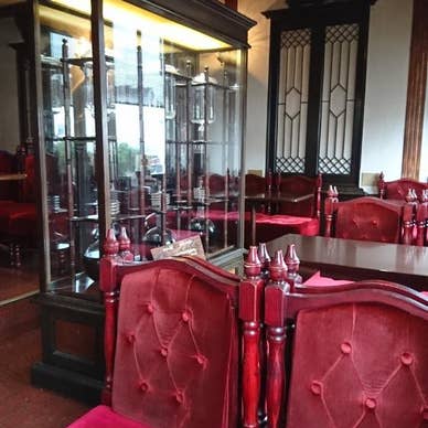 お店に入ると本格的な珈琲館というか珈琲専門店の雰囲気。薄暗い店内には様々な手挽きのコーヒーミルやオランダ風水出しコーヒーの機器が展示してあります。 椅子は懐かしの深紅のベルベットです。今はカフェや全国展開の珈琲チェーン店に押されて、なかなか姿を見なくなった昔ながらの喫茶店ですね~❗ 珈琲館とうたってますが、サンドイッチやピザのほか、スパゲティやハンバーグ等も置いてありました。カレーも欧風・インド風・ココナッツミルクと三種あります。ココナッツミルクのカレーが気になりましたが、「ハンバーグライス(デミグラスソース)」をコーヒーセットでお願いしました。 ワンプレートで登場したハンバーグは結構大きめ。ちゃんとお店で手作りしたものなのかはちょっとわかりません。形は極めて整っています。ミンチの具合も超滑らか。でもお腹が空きまくっていたので美味しくいただけました❗ 食後にいただいたコーヒーはいたって平均的なお味。特にこれと言った特徴は見つかりません❗「ネルドリップ1杯だて」と道路沿いに看板がありましたのでそうなのでしょうが、ネルドリップにしては苦味や雑味が多い感じ。豆や焙煎や挽きかたの問題もあるでしょう。私の勝手な珈琲に関する期待が高すぎたのかもしれません‼️ 珈琲専門店にしては食事の品種が多過ぎる。どうも珈琲館の目玉は「欧蘭陀館」の店名にもなっているオランダの「水だしダッチコーヒー」みたいですね。 この店では私のように昼飯のタイミングを逃してしまったお客さんが思い思いに食事を取っているようです。また昔の本来の喫茶店の「喫」のタバコを燻らせながらゆっくりと珈琲を味わう常連客のお店のようでした❗
