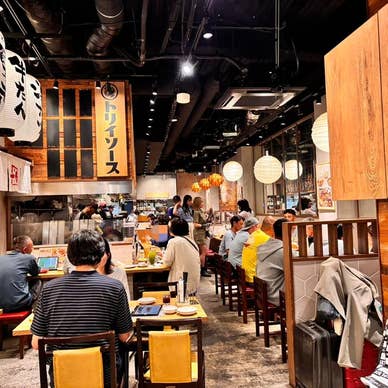 駅からアクセスしやすいエリアにあり、目を引くインパクトのある外観と清潔感あふれる店内が特徴のお店です。メニューには白・黒・赤などバリエーション豊かな一口餃子や、名古屋スタイルの串カツ、静岡おでんなどが並び、お酒のお供としてもピッタリ。ニンニクの効いた餃子はもちろんのこと、どの料理も手頃な価格と満足のいくボリュームが魅力です。タッチパネルで注文も簡単。観光客から地元客まで、気軽に立ち寄れて一人飲みも楽しめる、ちょっとしたグルメ体験ができます。