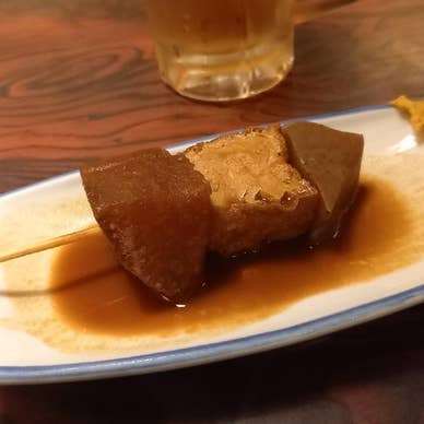 名古屋旅行⑤ 名古屋駅から歩いて3~4分 名古屋名物が色々揃っていて 旅行者にはありがたいお店です 入店時に「タバコOKの店ですが大丈夫ですか?」と聞かれましたが さほど匂いは気になりませんでした 頼んだのは… ◼️八丁味噌串カツ(3本) 570円 ◼️名古屋コーチンはらみおろしポン酢 580円 ◼️鮮魚のぶつ切りユッケ風味 780円 ◼️生ビール(中) 580円 お通しは味噌おでん 全体的に味が濃いめなので ビールがススムかと思いきや 濃い味効果ですぐにおなかいっぱいになってしまい 食べたかった手羽先や天むすを諦める結果に 味噌串カツは揚げたてで柔らかくて美味しかった 名古屋の味噌文化 好きになりました #メニューが豊富 #一人でも気軽に入れる #名古屋グルメ