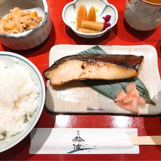 名古屋栄地下鉄東改札口出て直ぐに 鈴波定食1430円@ 本日の焼魚(みりん粕漬け)は鰆でした。 ぶ厚くて皮にあぶらがのっている鰆! みりん粕漬けが漬かっていて めちゃ旨でした❤️ 丹波黒豆の甘さ,守口漬けの漬物,ひじきの煮物旨味 みりん粕漬けの甘辛旨味もある定食❗️ こちらは洋食みたいにメインの主張ではなく 料理全体のバランスで主張してくる激旨定食です‼️ ご飯おかわりできます。(柔らかめ) 前回、相方のストップもあり、おかわりできません でしたが今回はお腹一杯頂きました笑笑 〆の梅酢ドリンクでさっぱりして、最後ほうじ茶で ごちそうさまでした。 食べ終わりは ほっこりします(^.^) 店頭にテイクアウト販売もしてます。 #若い世代にも食べてもらいたい定食 #ご飯おかわり可