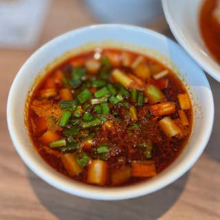 2025.6.13 11:00 伏見で社用を済ませ100円cash back couponを使用と気になる限定をいただきにこちらに訪麺。 麻辣昆布水つけ麺@1,050円をポチッと❗️ 特盛@0円で発注。 威風堂々のパクリ⁇(≧∇≦) 辣油昆布水に浸かった全粒粉入り細麺をそのままいただくと、あまり昆布の味はせず辛さもほぼ無し。 麻辣なつけ汁にダイブして一気に啜ると辛さはピリ辛程度、出汁にコクがありとても旨いo(^_^)o サービスの卵黄を2個程麺に落とし麺に絡めても良き(๑˃̵ᴗ˂̵)※卵白はつけ汁にドボンね 特盛と言っても300g位しかないのであっという間に麺が無くなり、辣油昆布水割りを楽しみ〆 そこで結構挽肉が入っていたのに気付き、これが旨くてかなり良きだった٩( 'ω' )و ご馳走様でした❗️ #89