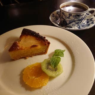 【伏見にある隠れ家的カフェ】 名古屋伏見駅から 名駅方面に歩いて数分 公園が向かいにある場所 NOV. CAFEさんが あります。 カフェバーと言う感じ の薄暗い店内はまさに 隠れ家的なお店。 奥には個室の様な場所 も見えます。 ベンチソファに座り、 メニューを見ます。 注文したのは、 洋梨のタルトにコーヒー。 コーヒーはコロンビアを♪ 一緒に運ばれてきた ケーキとコーヒー。 洋梨のタルトは 一見ベークドチーズ ケーキに見えます。 脇にはキウイとオレンジ が添えてありました。 アーモンドクリームに 洋梨のコンポートが 乗ったタルトでした。 コーヒーのコロンビア、 ミディアムローストの コーヒーです。 柔らかな苦味と豊かな フルーティーさで、 酸味が突出しておらず バランス良くマイルド な味で私好みの味。 おいしいコーヒーと スイーツが食べられ、 そしてこの雰囲気! 最高の贅沢ですね。 ごちそうさまでした♪♪♪♪ #大人の空間 #ゆったりできるカフェ #コーヒー好きのためのコーヒー専門店