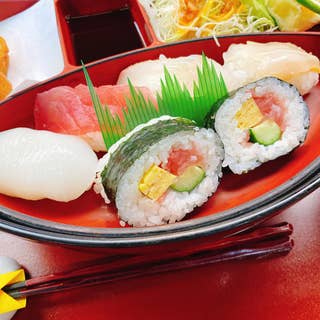 以前夜にお邪して美味しかったのと、実はランチがかなりお得だと知りまして訪問することに。祝日の11:30頃に伺いましたが、すでに先客多数の人気ぶり。敬老の日だからなのか、年齢高めの方々がテーブルに、カウンターに、小上がりにといらっしゃいます。 私たちはカウンターに座りました。注文したのは、A.すしランチ(1,078円)です。来るまでに20分ほど待ちましたが、なんのその。すしランチのボリュームに圧倒されます。握り6貫、巻寿司2つ、サラダ、自家製はんぺん、玉子焼き、そして赤出汁とうどんが付きます。もちろんどれも美味しいんです。これで税込1,078円はかなりお値打ちです。繁盛店なのもうなづけますね。 こういうのをコスパが良いと言うのだ、と心の中で噛み締めました。