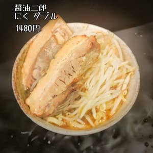 人気No.1 醤油 二郎 1000円 人気No.2 暦 二郎 1100円 人気No.3 まぜそば 1100円 平日ランチサービス ・半熟煮玉子 50円 ・ごはん(中) 50円 ※おひとり様2つまで同時注文できます! みなさまのご来店心よりお待ちいたしております