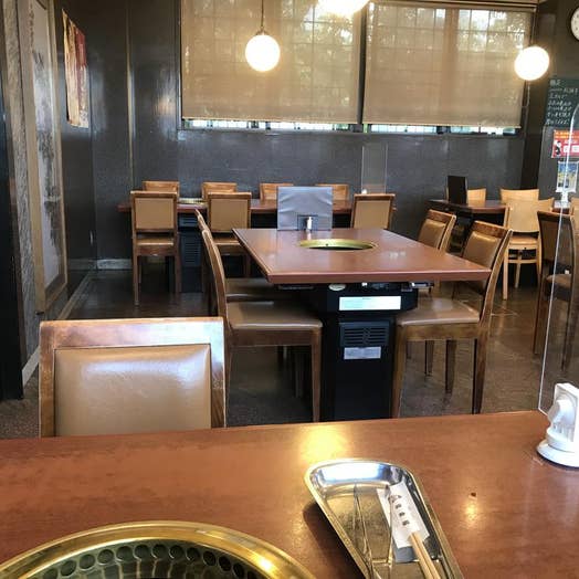 テーブル席の丸型ロースターを囲み点火!