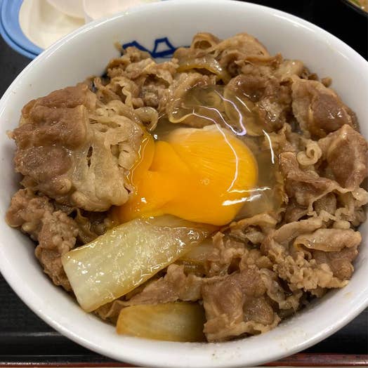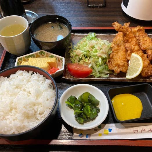 セットには卵かけご飯も付いてくる。新鮮な卵の黄身は濃厚で、炊きたてご飯との相性も抜群。卓上の醤油を少し垂らせば、卵のまろやかさが引き立ち、シンプルながらも贅沢な味わいに。さらに、漬物と海苔も添えられており、味にアクセントを加えてくれる。