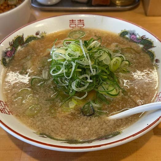 数分で着丼しましたが、程よい背脂と九条葱の量で良いですね(^^)スープも某京都ラーメンチェーン店みたいに醤油が濃過ぎず良い塩梅かつコクがあります。