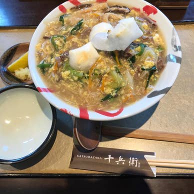 噂の【ちゃんどん】食べに行ってきました! 餡掛けのトッピング選べるので焼き餅、たまごとじ、牛肉。餡掛けの出汁が何とも言えない美味しさです。人気店で常に客待ちが発生していますが店員さんが少なくオペレーションが上手く回ってない状況みたいでした。。 持ち帰りでアップルパイ頂きました、リンゴたっぷりでこれまた美味い⭐️⭐️⭐️
