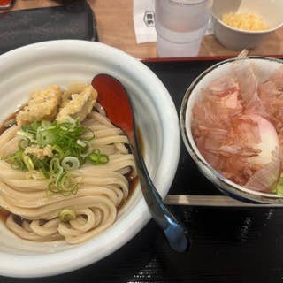 京都縦貫道からちらっと見て気になってたので来てみました 腰の強い麺は食べ応えある 出汁も節を5種ブレンドらしいです ぶっかけにしたので出汁を堪能できてません 選べるセット1000円 冷ぶっかけとり天 鰹節丼です なかなかのクオリティでした。
