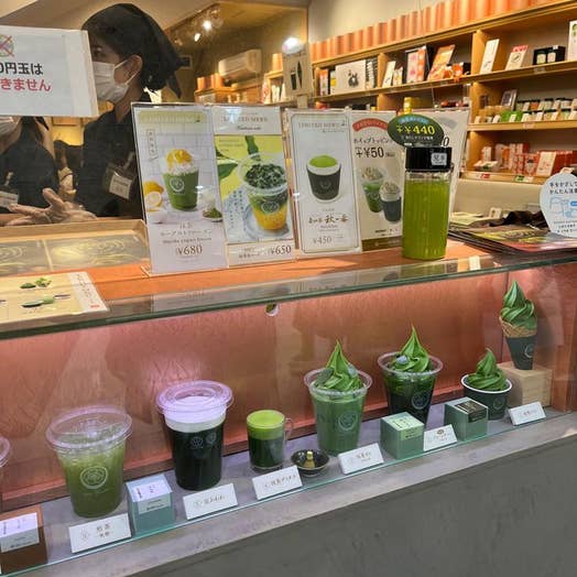 Matcha cafe located in a shopping mall directly connected to Kyoto Station.