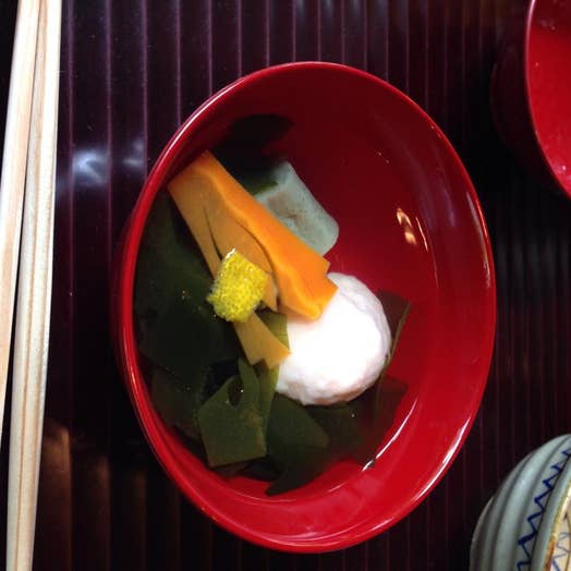 次の、蟹肉と海藻のフカヒレスープに京ゆば乗せは、蟹と海苔香りが漂いコリコリしたフカヒレが良く調和していた♫