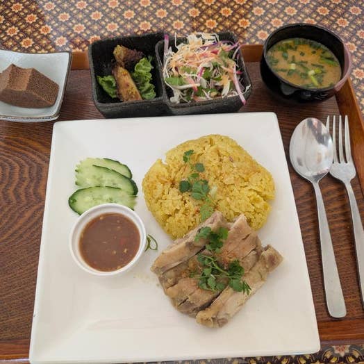 食べたのは980円のランチ。カレーは、バターチキンorほうれん草or野菜orシーフードor本日のカレーの中から一つで、辛さも①甘口②普通③中辛④辛口⑤激辛(だったと思います)から選べるので、