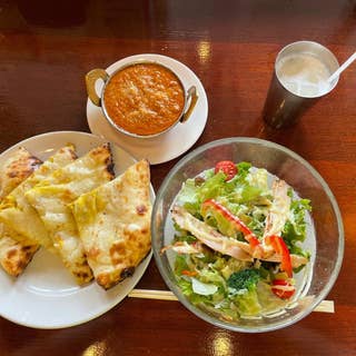 岸和田カンカンにあるインド料理屋さん。でも、フォーとかカオマンガイ、グリーンカレーなんかもあるみたい。 ナン食べ放題っていうダブルカレーランチを食べました。といっても、ナンは大きい上に、ライスも付いてるので、私にはナンのお代わりなんて考えられません。ダブルカレーは、野菜カレーと、何種類かから一つチョイス。私の場合は、迷わずマトンですね。 野菜カレーは、トマトのくし切りが生に近い形で入ってて、他の野菜もゴロゴロ形が残ったままで、インドカレーのイメージとはちょっと違う感じ。筍や浅利が入った季節のカレー(なぜかまだ春)なんてのもあって、日本流にアレンジしてるみたいです。 でも、マトンカレーは予想を裏切らない味。 ナンも鈎痕があって、ちゃんとタンドールで焼いてると思われます。 ドリンクも付いて満腹ランチ。ごちそうさまでした。