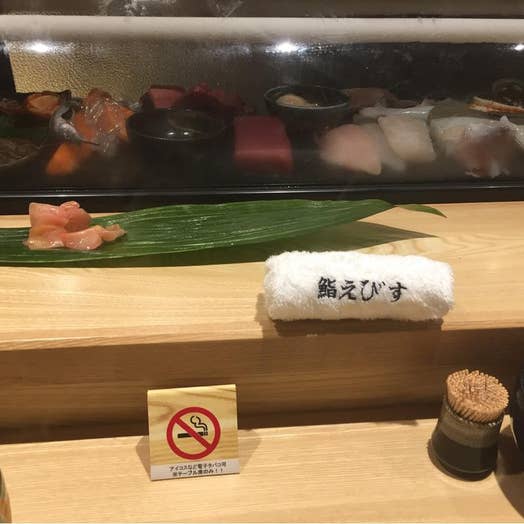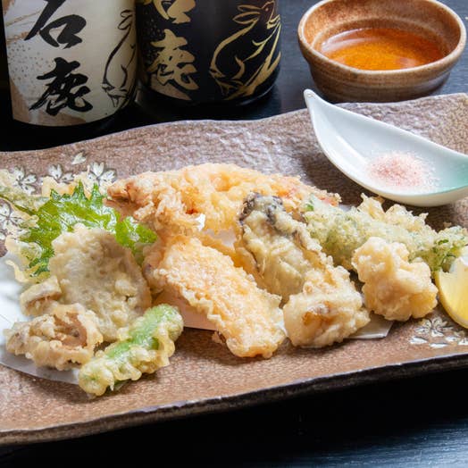 料理は「車エビと旬菜の天婦羅」と「寒ブリ中落ち身のスパイス岩塩炙り」を。