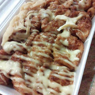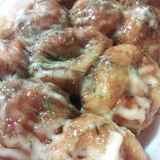 大玉たこ焼き¥540 地元のお店だけどおいしいんやでー ソースは7種類から選べます 今日はゆずソース めっちゃおすすめ カリとろです♡