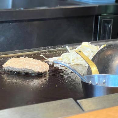 【ランチ限定10食の熱々ふわふわ手ごねハンバーグ】 食べログ3.39 大阪・福島エリアランチタイムはまだ行列で辿り着けていないピザ屋さんへ向かうもまた行列_| ̄|○ 仕方なく諦め歩いていると限定10食の美味しそうなハンバーグビジュアルのイーゼルを発見したので、こちらへ突撃致しました。 13時過ぎてても、まだハンバーグはあるとの事なので『ハンバーグ(1200円)+目玉焼きトッピング(50円)』いただきましたぁ〜! オーダー後直ぐに、サラダとコンソメスープが運ばれます。 サラダは瑞々しく酸味のあるドレッシングは清涼感あり、コンソメスープでほっこりしなながら待ちます。 6分後に鉄板からジューーッと美しい音色を奏でながらエッグハンバーグが到着。 炊き加減良い、つや姫ご飯もテンション上がります。 鉄板にはエッグハンバーグ以外にもブロッコリーや玉ねぎ、もやしがのり野菜を身体が欲してたのでタイミング的に嬉しい(笑) 玉ねぎは甘く、もやしはソースをしっかり纏い味付け抜群です。熱々のハンバーグはふわっふわ*・゜゚・*:.。..。.:*・'(*゚▽゚*)'・*:.。. .。.:*・゜゚・*デミグラスソースの上にエッグがのり、味付けはバランス良い感じで大盛りライスが進みます。 途中、黄身を潰して食べると円やかさが増し想像以上にあっさりいただき完食でございます。 自己評価★★2.5 メニューにお替わり無料とか書いてないので、大盛り大丈夫か?分からなかったので聞いて正解です!メニューに記載あれば新規の場合は嬉しいかな。 こちらは肉系メニューも機会あれば食べたいでおまっ <勝手ながらの評価基準> ★1・・・まぁ普通 ★★2・・・これは美味い ★★★3・・・うっ美味い また来たい ★★★★4・・・なっ美味しい 絶対また来る ★★★★★5・・・めちゃくちゃ美味しい 感動をありがとうで評価