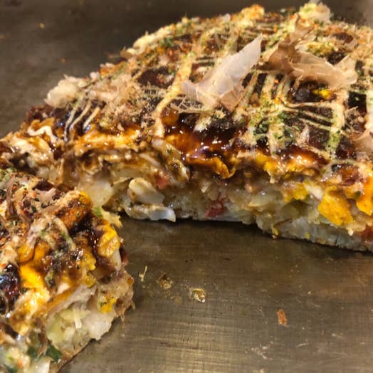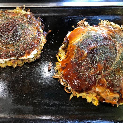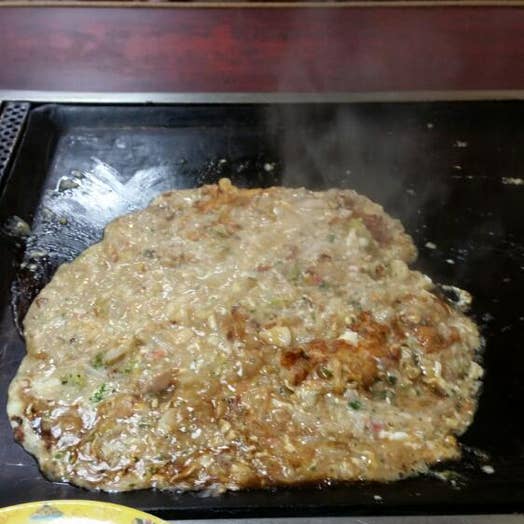 目玉焼きは注文すると目の前の鉄板で焼いてくれ、折り畳んで提供されました。