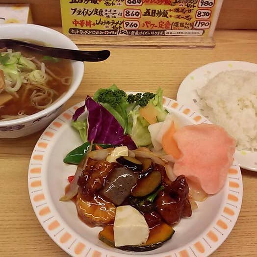 メニューは、中華料理の定番「ラーメン」から焼きそば、焼ビーフンの麺類、各種スープをはじめ、焼きめし、カレーライス、オムライスの洋食、八宝菜、からあげ、肉だんご、天ぷら、えびチリと中華メニューまで多岐に渡っています。