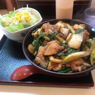 ご飯の上に香ばしく調理された具材がたっぷりのった丼は、特にネギのアクセントが効いており、最後まで飽きずに美味しく食べられます。しっかりとした味付けとボリューム感があり、学生にもぴったりのクオリティ。汁物は別注文となりますが、メインの丼だけでも十分に満足できる一品です。ガッツリ食べたいときやスタミナをつけたい日におすすめです。