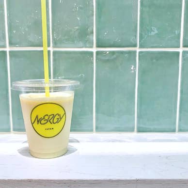 大阪エキスポシティ内にある NERGYという服屋さんに併設されたcafe♡ スムージーとクレンズアイスのお店で 健康を意識したcafeになっています。 「運動も好きだけど、食べることも好き カラダの内から自分を磨きたい 気負わず自分らしく、だけど一歩先の自分へ 心も体もアクティブを目指す女性へ贈る NERGY WELLNESS CAFÉ」 ウェルネスを楽しむ女性のために生まれた 進化系のスムージーが気になり注文。 スムージーは5種類ありall600円です。 クレンズアイスは渋谷店 名古屋店でもいただけますが スムージーは当店のみだそう。 ☑︎シャイニーパイナップルイエロー 600円 (250ml 114kcal) ・パイナップル ・アーモンドミルク ・デーツ ・マンゴー ・グレープフルーツ 塩分排泄が期待できるスムージー。 アーモンドミルクベースなのもヘルシー。 パイナップルの味が強かったので爽やかで 重くなくすうっと身体に入ってきました♡ ご馳走様でした(ᵔᴥᵔ)