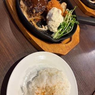 元は「HORN FIELD」というお店です。 店名が変わったようです。 土曜日の13時00分過ぎに訪問。 いただいたのは、 和風おろしハンバーグ(200g)...1,419円 わさび醤油ハンバーグ(200g)...1,518円 サラダ・スープ・ライスorパン付き (ライスは大中小から選べます) 和牛ハンバーグを売りにしているだけあって、ジューシーで超美味なハンバーグでした。 エビフライやステーキとのコンビも楽しめるランチメニューもあり、次回訪問時はそちらかな。