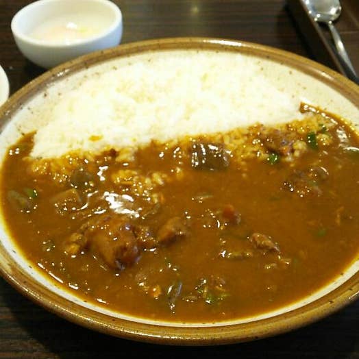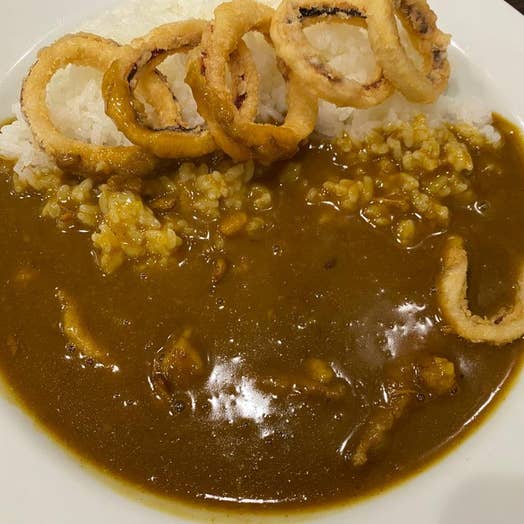 良く煮込まれたコクとスパイス感のあるルーとの相性良く、複雑な食感も愉しめる一品です!
