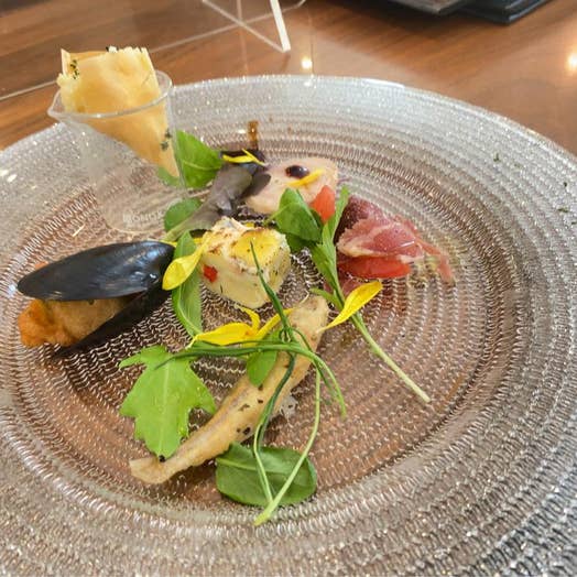 今回頂いたのは、私も娘もパスタセットから、私は「舌平目のポワレと生ウニと野菜のアーリオオーリオ」ボッタルガ添え。
