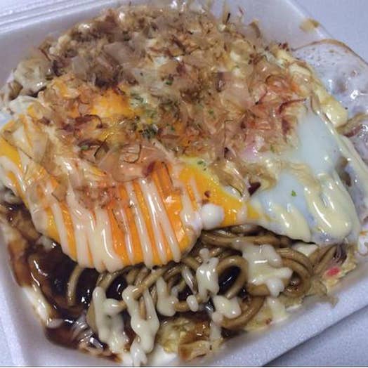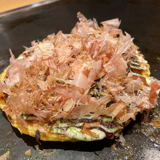 ソースが甘めなので、削りぶしと一味をかけていただくとまた一段と美味しゅうございました。