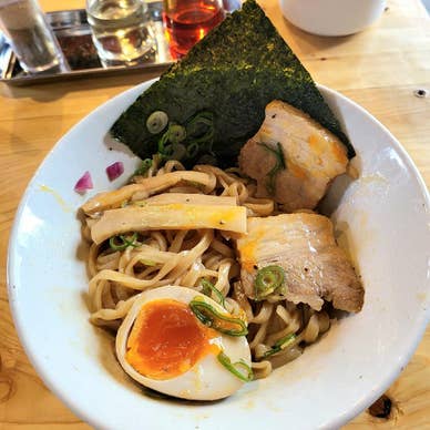 2023/6月 ども❗ えっ❗こんな所にカフェ? 車で走行中に発見❗ えっ❗混ぜそば~? どう見ても古民家をリノベした お洒落なカフェなのに。。。 えっ❗子供がかき氷を 買ってオープンテラスで 食べとる~www 不思議なお店だが。。。 ⭐混ぜそば ¥850円 しっかりとした大降りの 豚バラチャーシューに レッドオニオン・味玉・メンマ 海苔~~❗(苦笑) 麺はしっかりとした中太麺 あっさりとしたダシも旨い❗ カフェが見よう見まねで 作った感じでは無く本格的だ❗ 女性でもペロリと食べれる あっさり混ぜそばですね~❤️ 良いじゃ~ないかぁ~❤️ カフェ&混ぜそば 美味しかった❗ ごちそうさま~~❤️