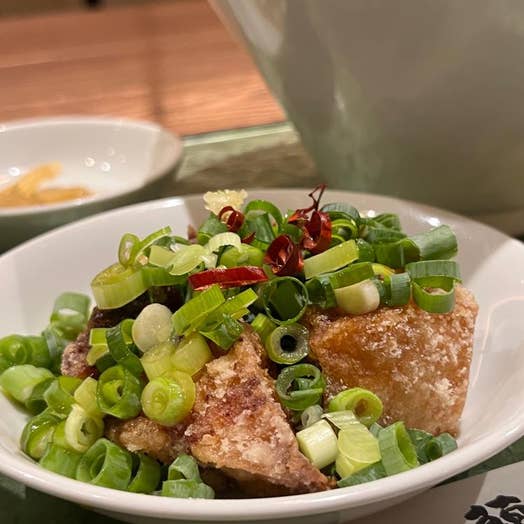 唐揚げは衣柔らかく、プリッとジューシーで炊き加減抜群のライスが加速します。