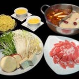 平日ランチタイム限定の火鍋。お肉1種類、野菜盛り、〆の中華麺か雑炊、デザートまで付いた基本的な火鍋プラン。お昼限定でお得なコースです。