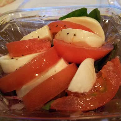 小腹が空いていたのでサッパリするトマトとモッツァレラチーズのサラダを…… 200gで1,000円 ちょっと高かったなぁ〜泣 モッツァレラチーズは食べやすかったです