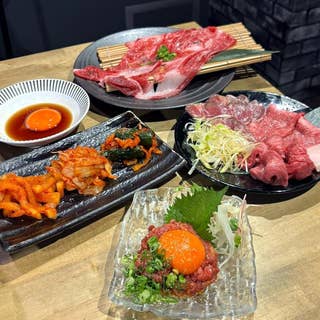 毎朝5時まで営業! 新鮮で上質な和牛を安く楽しんでいただくために部位売りは一切せず、精肉は赤or霜の盛り合わせ!味はもちろんの事視覚でも楽しんで頂けるような一品も♪ 「神戸牛」「宮崎牛」「近江牛」etcあえてブランドは絞らずその時々で質にこだわって仕入れしているので梅田最強コスパと品質で満足させます★☆★☆★ おしゃれな雰囲気の店内で各種宴会もご利用頂けます。2名様専用のお席もご用意!デートや記念日にもおすすめです♬