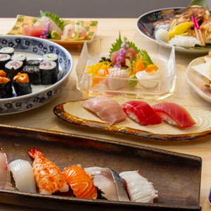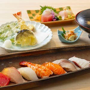 90分飲み放題付きで、旬の小鉢からお造り3種盛り、天ぷら盛り、板前お任せ寿司8貫、赤だし、デザートまで堪能できる充実コース。 板前自慢の技が光る逸品の数々を、気軽に味わえるおすすめプランです。 ※写真はイメージです。 ※当日の場合、内容が変わる場合もございます。