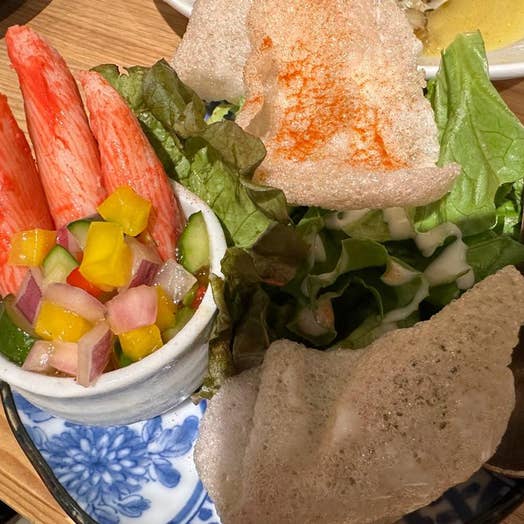 前菜盛合わせは少しずつ6種の小皿が楽しめる