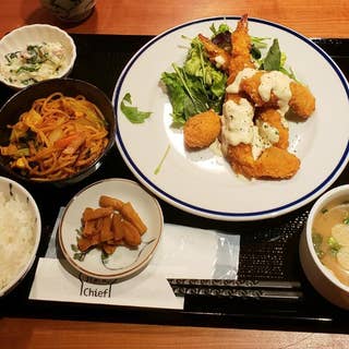 #手抜き無し❗サービスランチ❗ #料理人が料理した料理❗ #ドレッシングもポテサラも旨っ❗ 2020/3月 「コロナなんてぶっ飛ばせ❗」 「ぶっ飛びませんから❗」 皆様、お気をつけくださいね❗ ども!一等地優先のマクドナルド 2等地にも出店するモスバーガーは 味・商品勝負でしたよね❗ サービスと客数優先のマックに対し モスはクオリティー・品質で勝負❗ 北新地では、目立たぬ雑居ビルの中という 条件をものともせず大繁盛を遂げた 名店が数多く存在する❗ こちらもまたそんな匂いのするお店 美味しくて高いのは当たり前❗ 安くて旨い❗尚且つ 料理に手抜き無し❗ ⭐日替りランチ ¥950円(税込) 本日は、海老・イカ・貝柱フライに ナポリタンとポテサラ付きです❗ 旨いポテトサラダですなぁ~♪ スピナッチが入り甘味も有る 「旨い❗旨い❗」 合わせ味噌汁の具材は お麩と葱 「良いねぇ~♪」 スパサラは別盛りでちゃんと炒め直し 具材のあるナポリタンだ❗ 洋食店の赤スパも良いが。。。 このひと手間が嬉しい~\(^_^)/ お店で仕込んでいるのだろう 油と卵から作ってると思われる マヨネーズタイプのドレッシング 。。グリーンゴッデスか⁉️ 旨い❗青じその風味が凄い❗ (*>∀<*)ノ こりゃ~美味しいわ❗ 海老フライは尾っぽまで食べれます❗ 旨っ❗(*>∀<*)ノ お洒落な洗練された内装のお店に 街の食堂のような粋なもてなしの サービスの海苔玉ふりかけが玉乱❗ お洒落な小分け袋入りがニクいね❗ なるほど!なるほど! 食材を無駄にしない利用・ひと手間と 自家製の仕込みが成せるこの価格か‼️ 「ハイクオリティー・CP良し❗」 と言えるとおいらは思います❗ 夜 寄せていただくのが楽しみです❗ 美味しかった❗ ごちそうさま~(#^.^#)