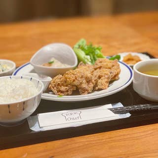 【うまし】食べログ3.09 北新地のchiefさん訪問。日替わりのチキンと餃子のセット注文。優雅な広々とした店内は内観も北新地らしい素敵なお店。米も旨い。