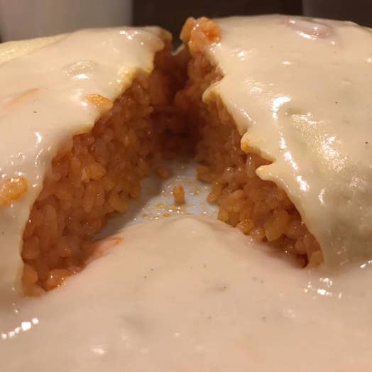 300~400g位の量のスパゲティに、150gのチキンカツ、そして、たっぷりのカレーソースがかかっています。