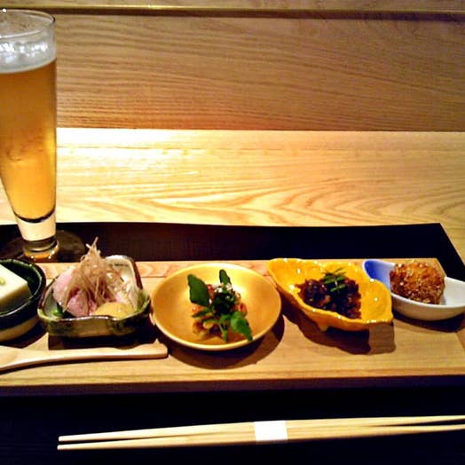 こちらの店のバルメニューは、前菜5種の盛り合わせと1ドリンクです。