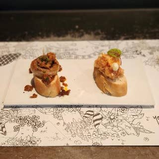 大阪市営地下鉄四つ橋線「本町駅」25番出口徒歩5分、大阪万博スペインパビリオン内にレストラン出店 されていた「ETXOLA」さんの真向かいに有り、本店の「ETXOLA」さんとはひと味違う雰囲気の中で、種類豊富なピンチョスやタパス・本場のスペインワイン楽しめます♪ バスク語でガストロテカは、"美食空間"、ビメンディは、"ふたつの山”の意味をもつそうです! aperitivos variados 2640円 おつまみ盛り合わせ2名様(人数分の注文になります) tortilla (patata/bacalao) 880円 スペイン風オムレツ(じゃがいも/たら) pintxos del dia 今日のピンチョス -Taxampi マッシュルームの鉄板焼、 エビのピカディージョ -Txistorra スペイン産チストラソーセージと ししとう -congrio 穴子のフリットギンディージャの タルタルソース -Queso クリームチーズのムース、柿、生ハム -Txaka チャカ(カニカマと卵のサラダ) -Queso de Cabra 山羊チーズのキャラメリゼと トマト lomo de cerdo adobado 2200円 スパイスでマリネしたスペイン産豚肩ロースの鉄板焼き arroz negro/arroz con almejas 1980円 いかすみのごはん/あさりのごはん どれも美味しゅうございました♪ ペット同伴OKとの事なので、是非また愛犬ベリーとお邪魔したいと思います❗️