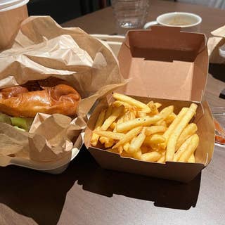 hotelのオープンスペースで作業のため、1Fのレストランのテイクアウトメニューで。 テイクアウトメニューは数は多くなくあまり選べませんが、サーモンのバーガーをセレクト。 ポテトとドリンクのセットにしたら結構なお値段になりましたが、ひと口食べたら感激! カリカリのサーモンフライに、アボカドとタルタルソースが美味で、パテも香ばしくて美味しい。 満腹になりすぎましたが、価値のある一品でした。