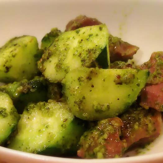 、炙りいとより 焼きなすのソース、泉州の水茄子と和歌山の胡瓜の海苔佃煮和えと枝豆を入れたゼッポリーネ!