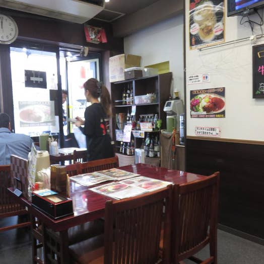 店内はカウンター席が5席、4人掛けテーブル席が4卓、2人掛けテーブルが3卓とキャパの広いラーメン専門店。テーブルの上には味変アイテムの一味、ラーメン胡椒、ラー油、餃子用ポン酢が置いてあります。