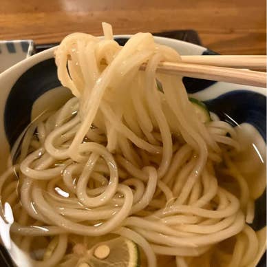 開店の暖簾が出るのを待って入りました。頼んだのは、サーモン丼とすだちうどんのセット1188円。うどんは冷たいのにしましたが、とにかく出汁が美味しいので、飲み干しました。細めのうどんはコシがあってツルツル入ります。サーモン丼は酢飯ではないタイプ。近くの「総本家 浪花そば」さんとは姉妹店。(2025年10月26日訪問)